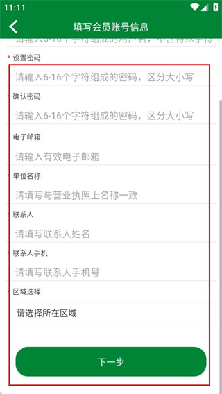 3、在填写会员账号信息页面,完善信息后点击下一步,完成账号注册。
