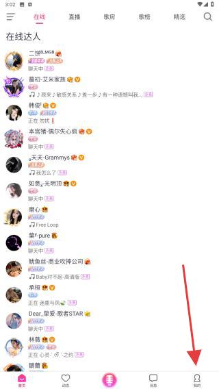 1、打开爱唱的APP,进入时点击下方我的图标。