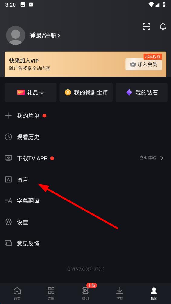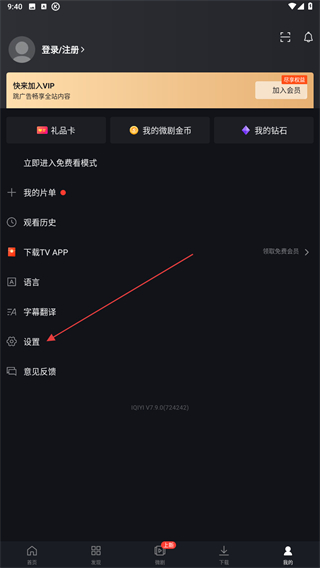1、打开爱奇艺国际版app,点击底部导航栏中的我的选项,进入个人中心页面。