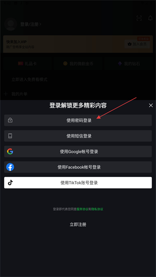 3、在弹出的登录界面中,点击使用密码登录的选项。