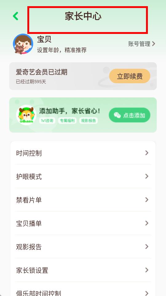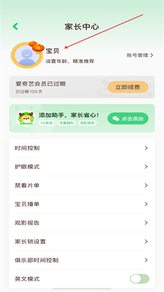 1、打开爱奇艺奇巴布APP进入家长中心页面。