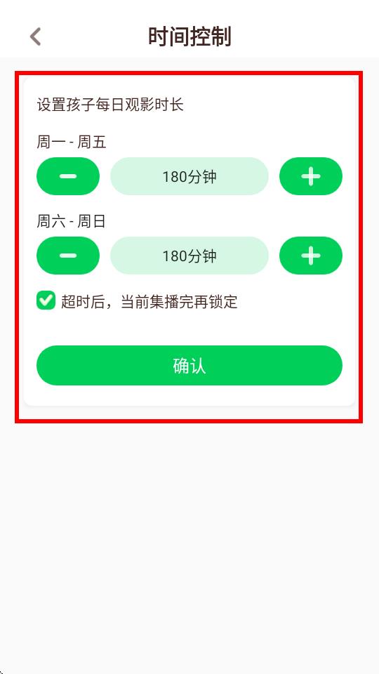 3、在时间控制界面根据需求通过+,-按钮分别设置,完成设置后点击确认保存即可。