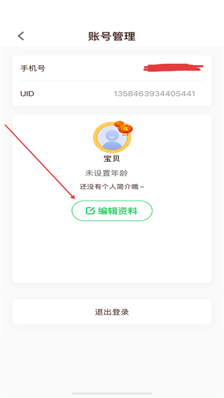 2、在账号管理的界面内,点击编辑资料的功能按钮。