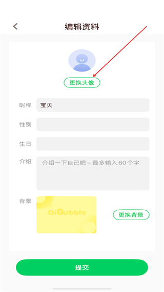 3、在编辑资料的界面内,点击更换头像的按钮即可更换成功。