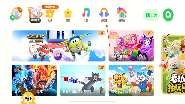 1、打开爱奇艺动画屋,在首页顶部导航栏中点击听故事选项,进入听故事专区。