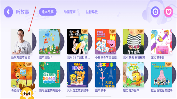 2、在听故事页面,可根据需求选择绘本书事的分类,筛选想要听的内容类型。