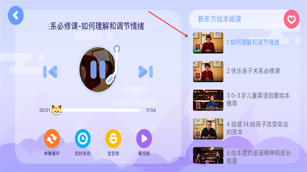 3、进入听故事的页面内,在右侧选择要听的故事名称,点击名称即可。
