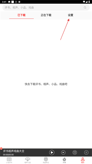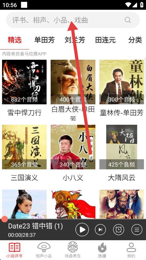 1、打开相声评书戏曲大全app,点击上方的搜索栏。
