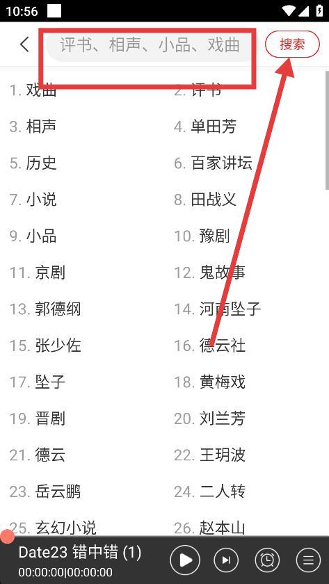2、在搜索栏中输入你想听的相声关键词,点击搜索按钮。