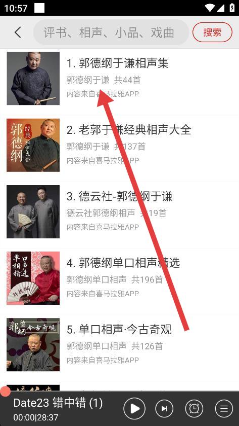 3、在搜索结果中,找到你想听的相声专辑并点击进入。