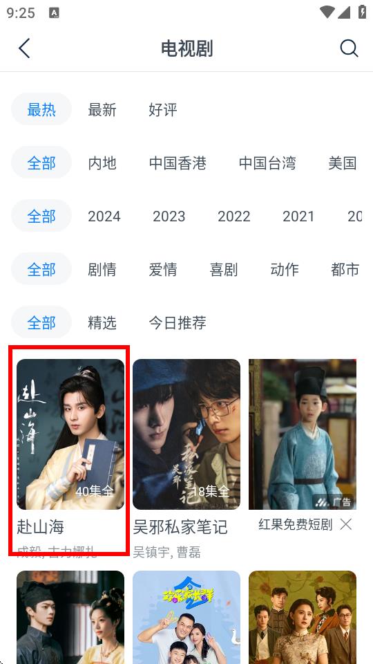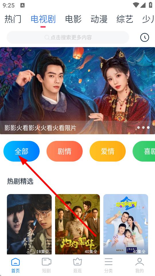 2、在电视剧分类页面,点击全部等分类标签筛选剧集,或直接浏览。