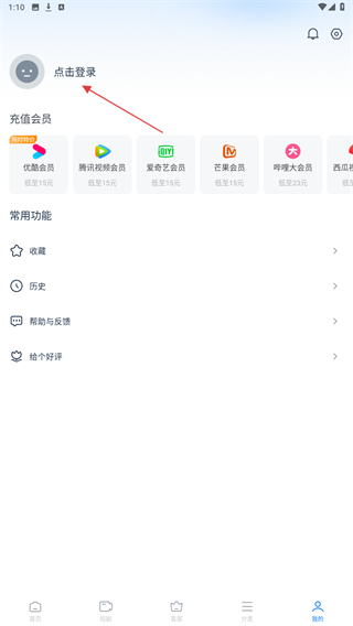 1、打开影视大全看看,点击页面右下方我的选项,进入个人中心页面。