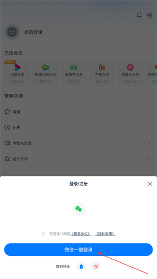 3、在登录界面中,找到微信图标对应的微信一键登录选项并点击即可。