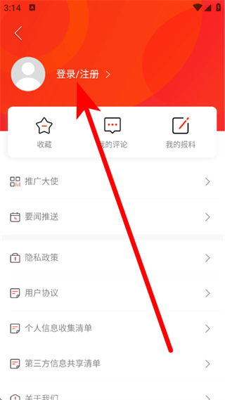 2、在个人页面,点击登录注册,进入登录页面。