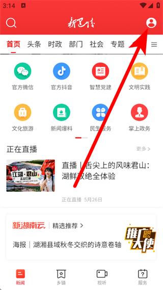 1、打开新巴陵,点击右上角的头像图标,进入个人页面。