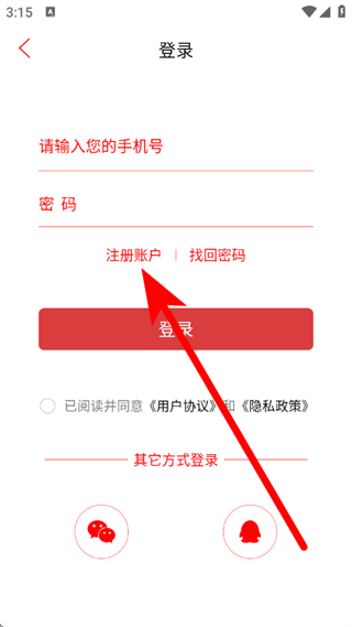 3、在登录页面,点击注册账户,进入注册页面。