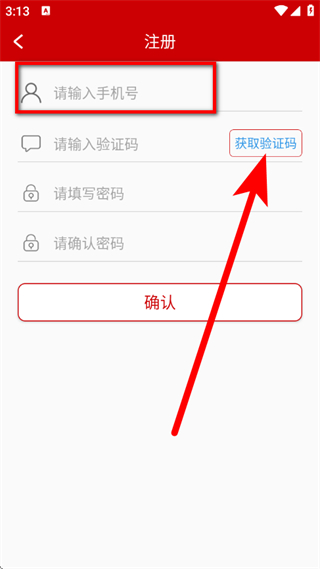 4、在注册页面,输入手机号,点击获取验证码。