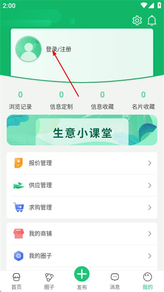 2、在个人中心页面,点击登录注册选项,进入登录页面。