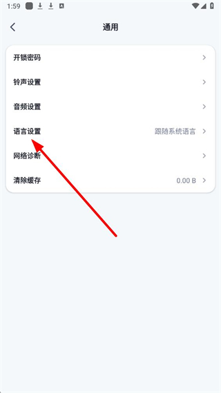 3、在通用设置页面,选择语言设置选项,进入对应页面。