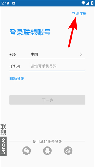 3、在登录联想账号界面,点击邮箱登录选项,进入邮箱登录页面。