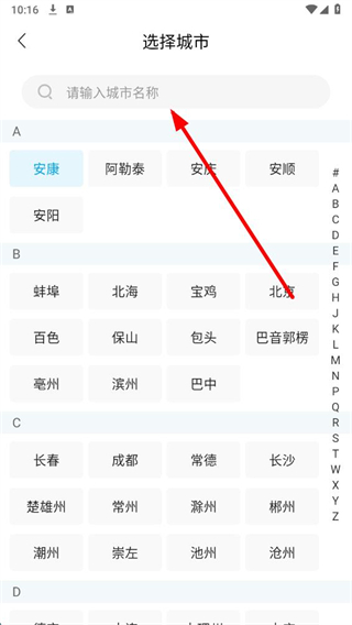 3、点击所在城市选项,进入选择城市页面后输入或选择所在城市。