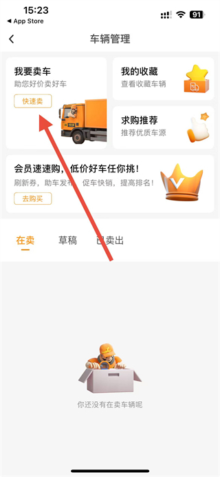 2、在车辆管理页面,点击快速卖选项,进入填写车辆信息页面。