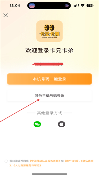 4、在登录界面选择登录方式,输入对应账号信息,勾选协议后点击登录注册,完成换账号登录。