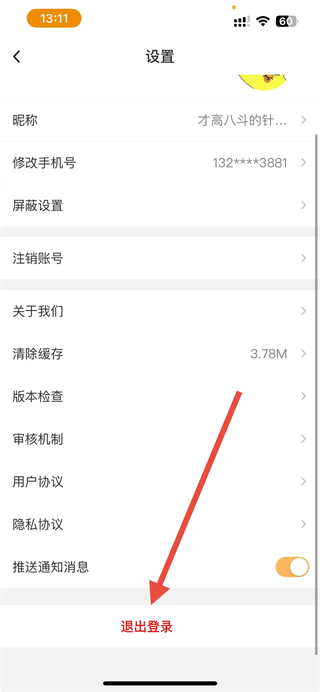 3、在设置页面中,找到退出登录选项并点击,完成当前账号的退出操作,跳转至登录界面。