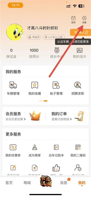 2、在我的页面右上角,找到设置图标并点击,进入设置界面。