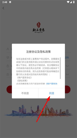 3、在弹出的注册协议及隐私政策窗口中,点击同意。