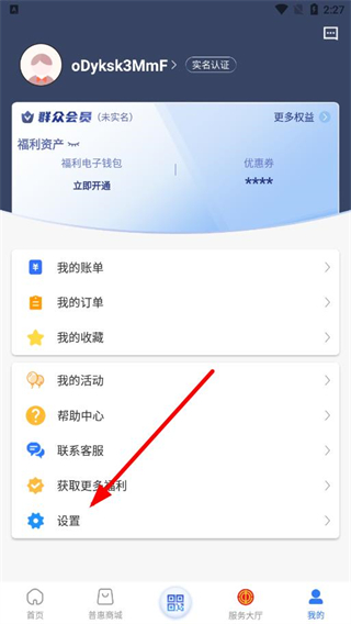 1、在职工普惠我的界面,找到设置选项并点击,进入设置界面。