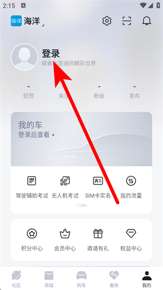 1、打开比亚迪海洋,点击底部的我的,进入我的页面。