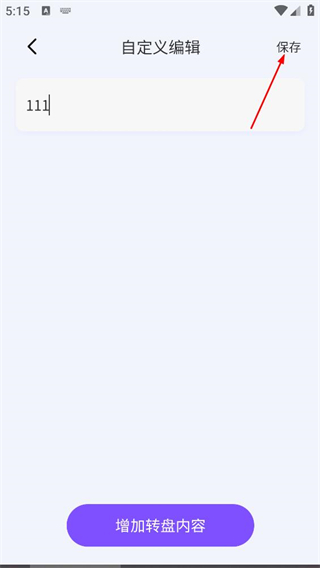 3、在自定义编辑页面,填写内容后,点击右上角的保存,完成自定义转盘内容的编辑。