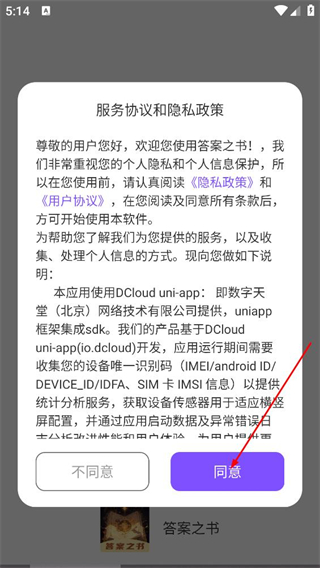 1、在服务协议和隐私政策弹窗中,点击同意,进入应用主页面。