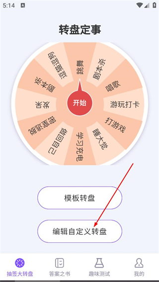 2、在转盘定事页面,点击编辑自定义转盘按钮,进入自定义编辑页面。