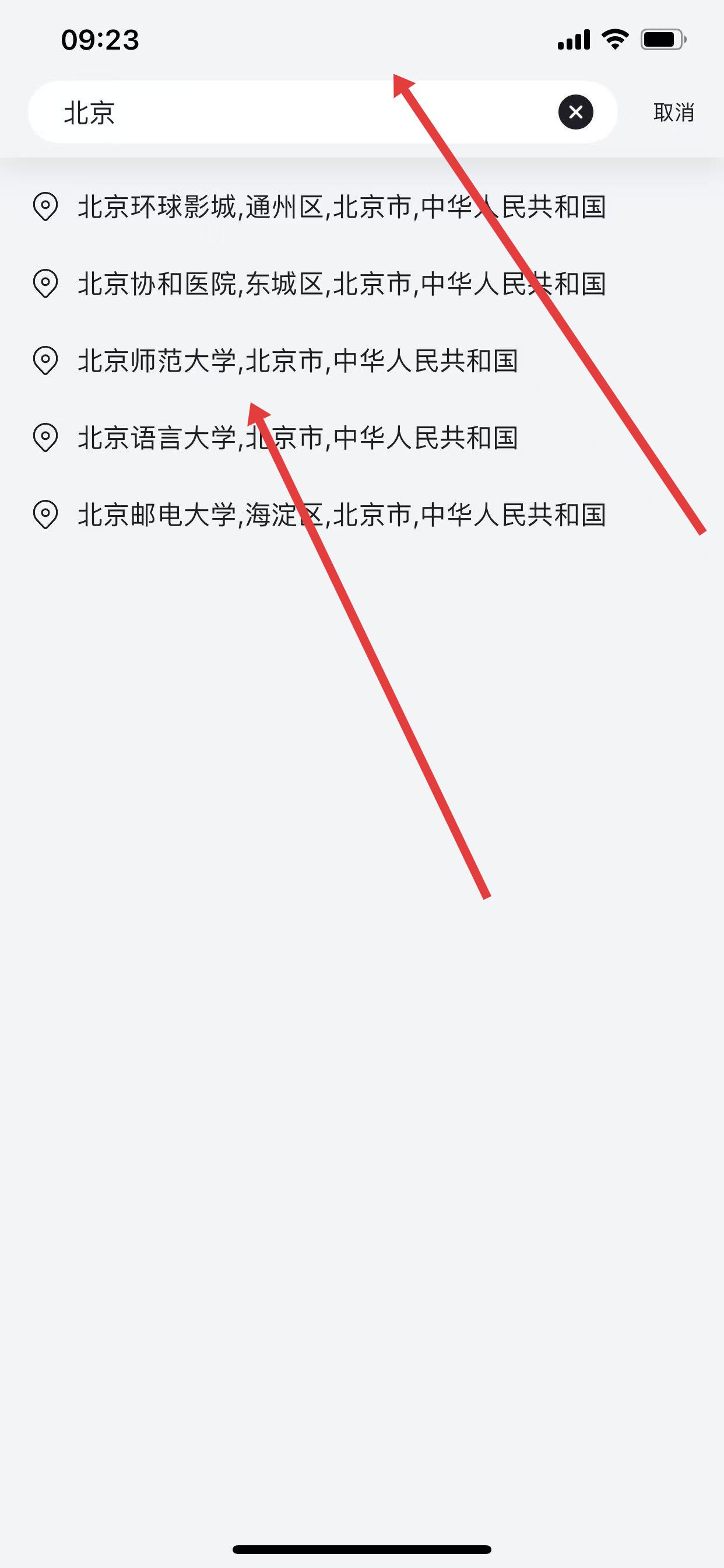 4、在搜索框中输入想要更改的地区名称,在搜索结果中选择对应的地区即可。