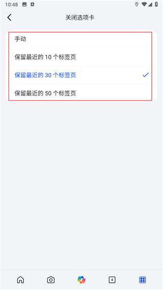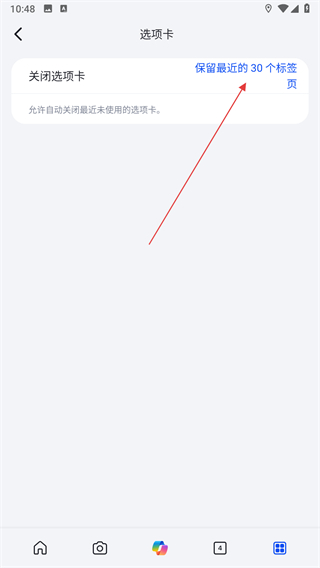 4、在关闭选项卡页面中,可选择任意一项,即可完成标签页设置。