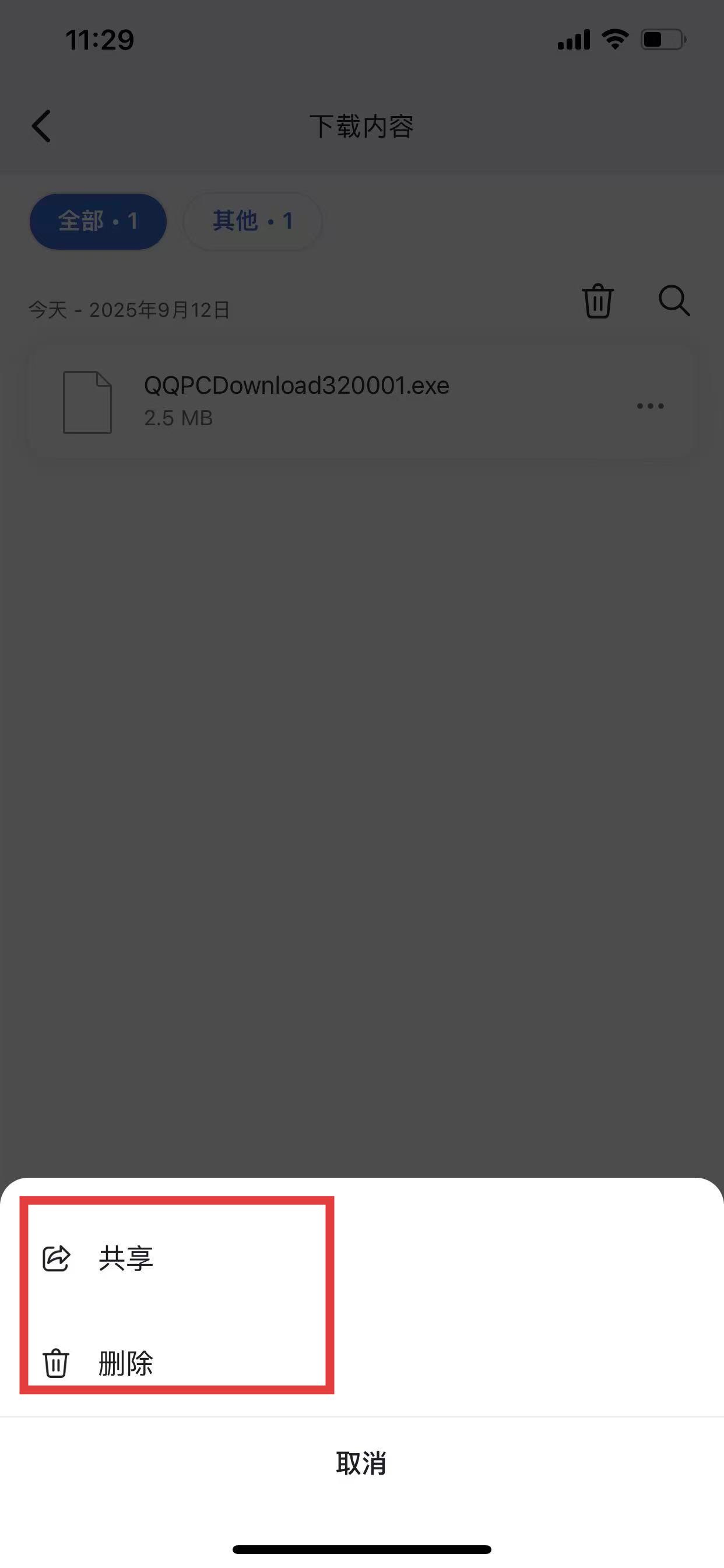 4、若需对下载内容进行管理,可选择共享或删除等操作。