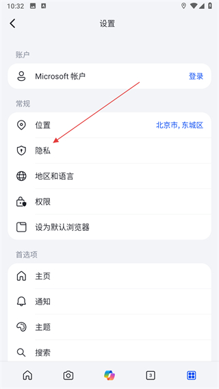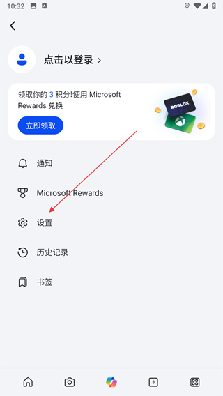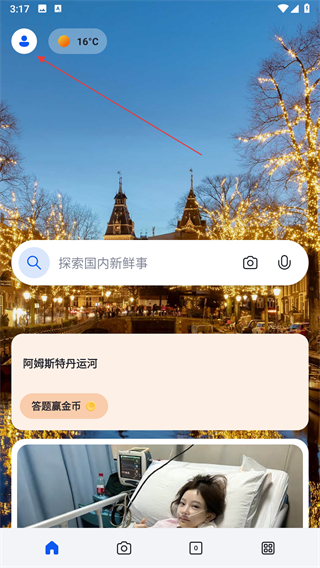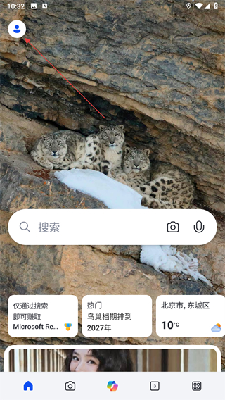 1、打开微软必应应用,点击左上角的个人头像图标进入对应界面。