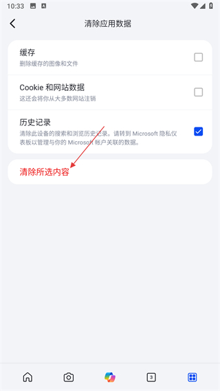 5、勾选历史记录选项,点击清除所选内容按钮即可。