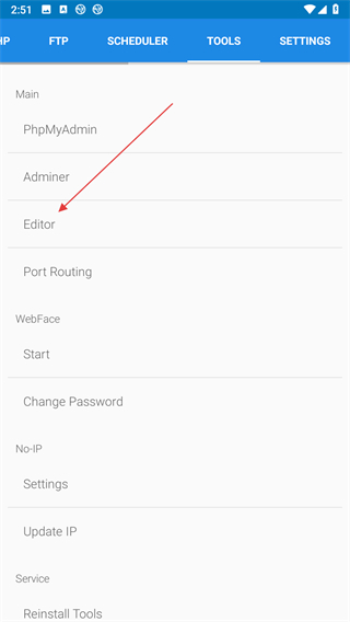 2、进入TOOLS页面后,在功能列表里点击Editor选项,进入编辑界面。