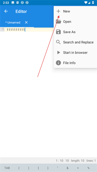 4、在弹出的操作菜单中,选择New选项,即可完成编辑器的新建操作。
