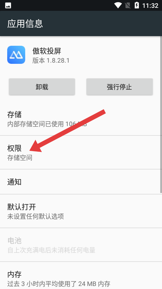 4、在应用信息的页面,点击权限选项,即可在权限管理中设置相机权限。
