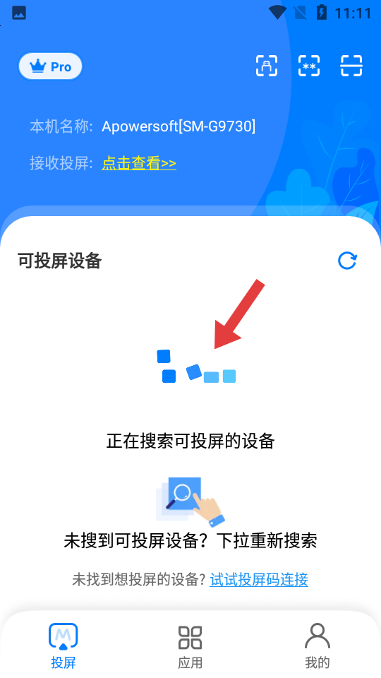 3、点击循环图标搜索附近可投屏设备,点击可投屏设备区域右侧的刷新按钮,搜索并进行连接。