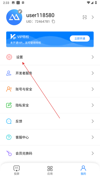 4、点击扫码图标,当弹出权限请求框时,点击允许授予摄像头权限,以便扫码投屏操作。