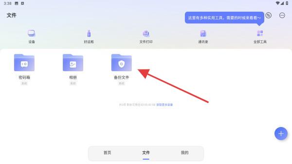 2、跳转到该页面,用户需要找到备份文件的文件夹,若未显示,可下拉刷新或检查APP版本。