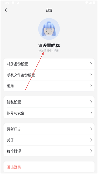 2、在设置页面中,点击请设置昵称区域,进入个人资料。