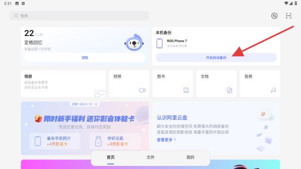 阿里云盘如何开启备份功能