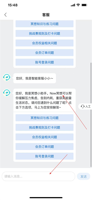 3、选择问题选项或输入框中输入想要咨询的问题,即可与客服进行沟通。
