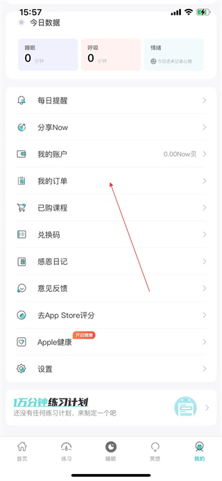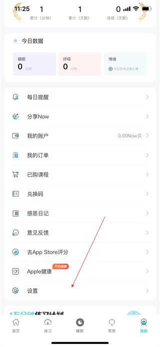 1、打开now冥想App的首页,点击底部的我的选项,进入个人中心页面。